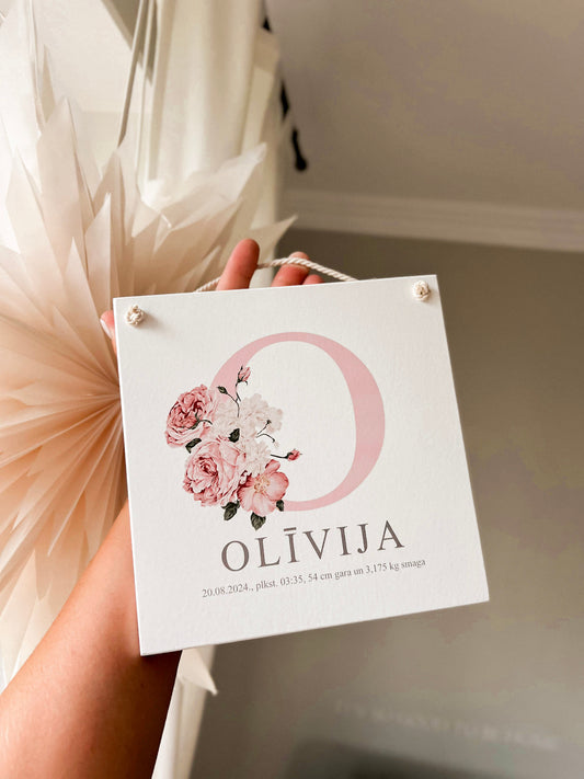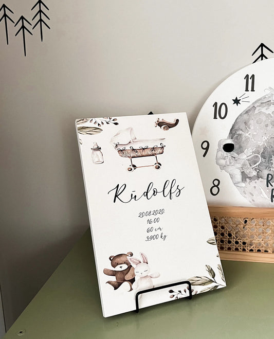 Bērnistabas koka dekors ar dzimšanas datiem