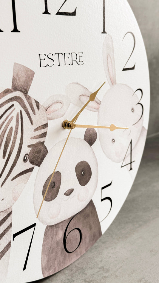 Bērnistabas sienas pulkstenis, Dzīvnieciņi, koka