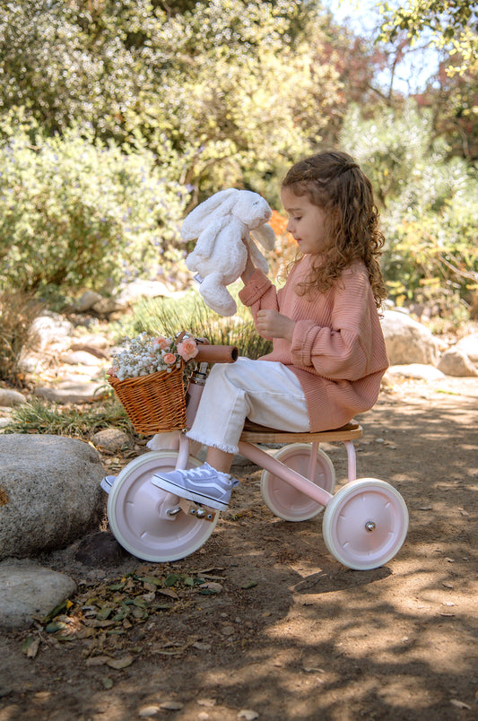 Banwood Bērnu trīsritenis ar pītu grozu, rozā