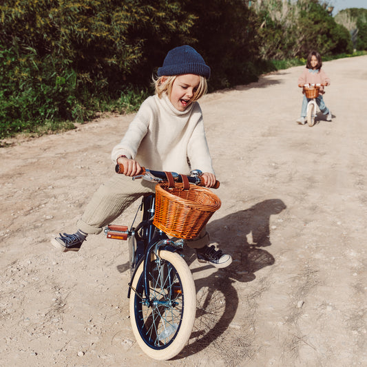 Bērnu divritenis ar pītu grozu, zils, Classic Bike Vintage Navy Blue, Banwood
