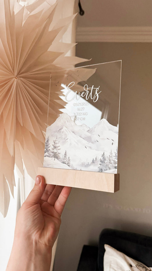 Kalni - Dekors ar bērna vārdiņu un dzimšanas datiem, stiklaStandarta cena €32,90 EURStandarta cenaVienības cena / par-
