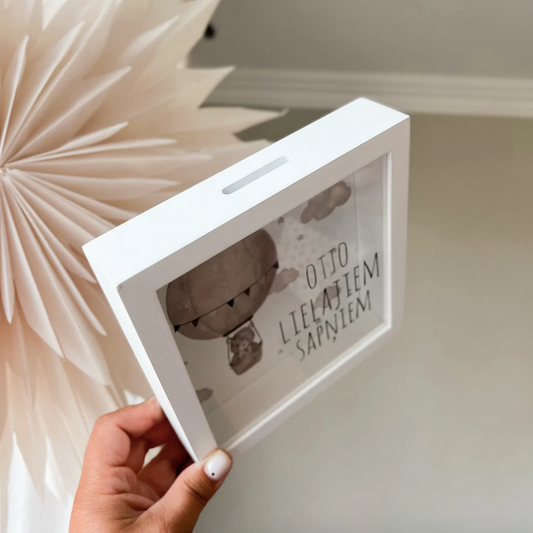 Naudas krājkase Lielajiem sapņiem, ar bērna vārdu - gaisa balons
