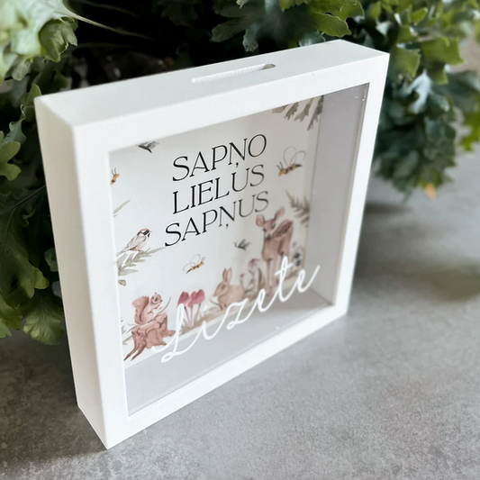Naudas krājkase Sapņo lielus sapņus, ar bērna vārdu - meža zvēriņi
