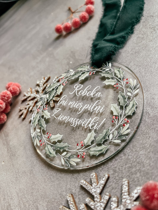 Personalizēts eglītes rotājums ar Vārdiņu + Lai mierpilni Ziemassvētki