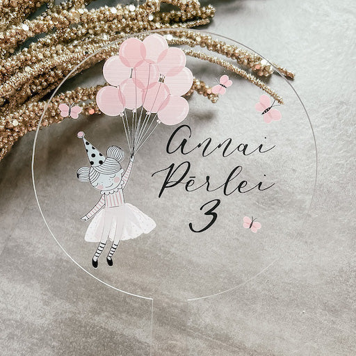 Princese un baloni - Personalizēts bērna dzimšanas dienas kūkas dekors - toperis