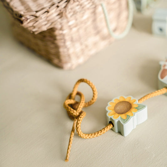 Aukliņu vērpšanas attīstošais komplekts Little Farm, Lacing Beads, Little Dutch