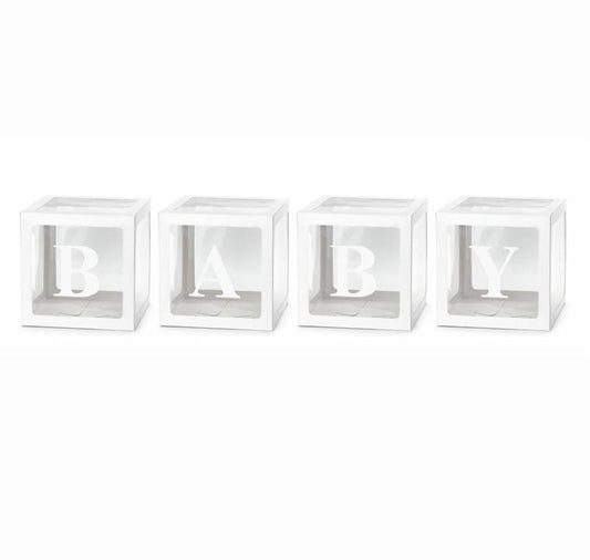 Carus permatomos balionų dėžutės, Balionų dėžutės KŪDIKIUI, 30x30 cm, baltos