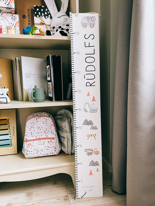 Traktoriai ir automobiliai - Personalizuota vaiko ūgio matavimo juosta - spalvinga