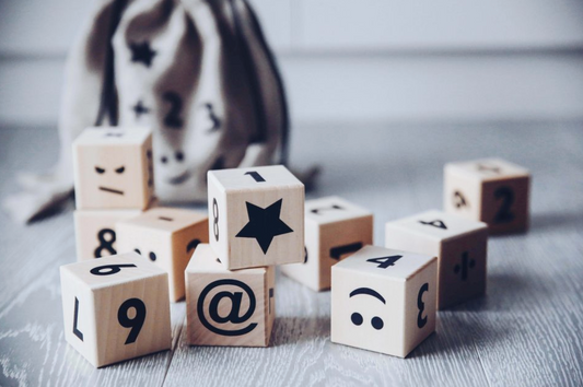 Mediniai abėcėlės kaladėlės, juodos abėcėlės kaladėlės, Ooh Noo