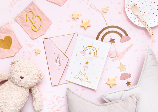 Sveikinimo atvirukas Hello Little One su pridėtu dekoru, rožinis, Party Deco
