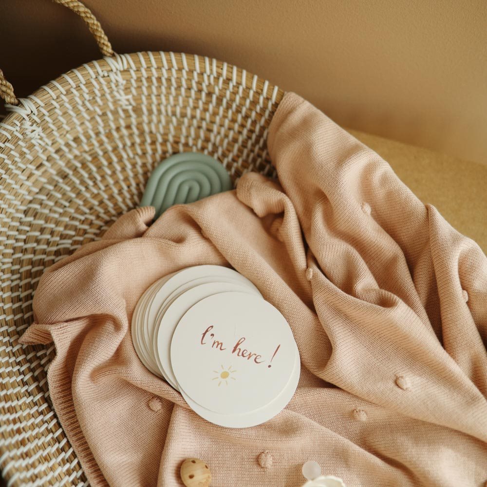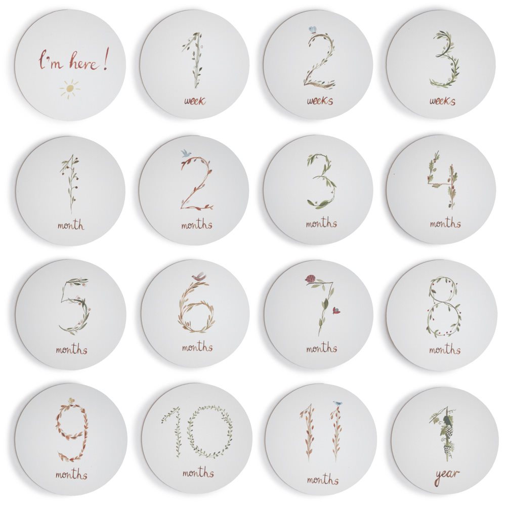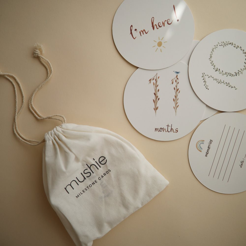 Įamžinkite brangiausius savo naujagimio prisiminimus. Stebėkite, kaip auga jūsų kūdikis, ir patirkite nepamirštamų pirmųjų bei ypatingų akimirkų su šiomis 16 unikalių „Mushie“ sukurtų atvirukų, kurie padės jums užfiksuoti ir švęsti kiekvieną naują gyvenimo etapą. Nuo pirmosios šypsenos iki pirmųjų žingsnių – kiekviena svarbių akimirkų kortelė yra kruopščiai sukurta taip, kad paminėtų šias ypatingas akimirkas jūsų kūdikio ankstyvosiomis dienomis.